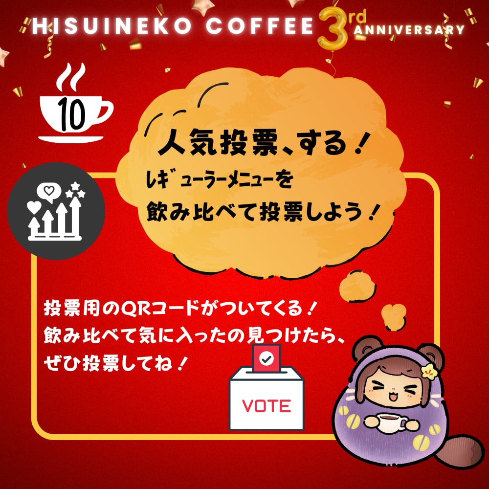 皆さんが選んだ、ひすいねここーひーのレギュラーメニュー人気投票結果を2月頃に大発表!