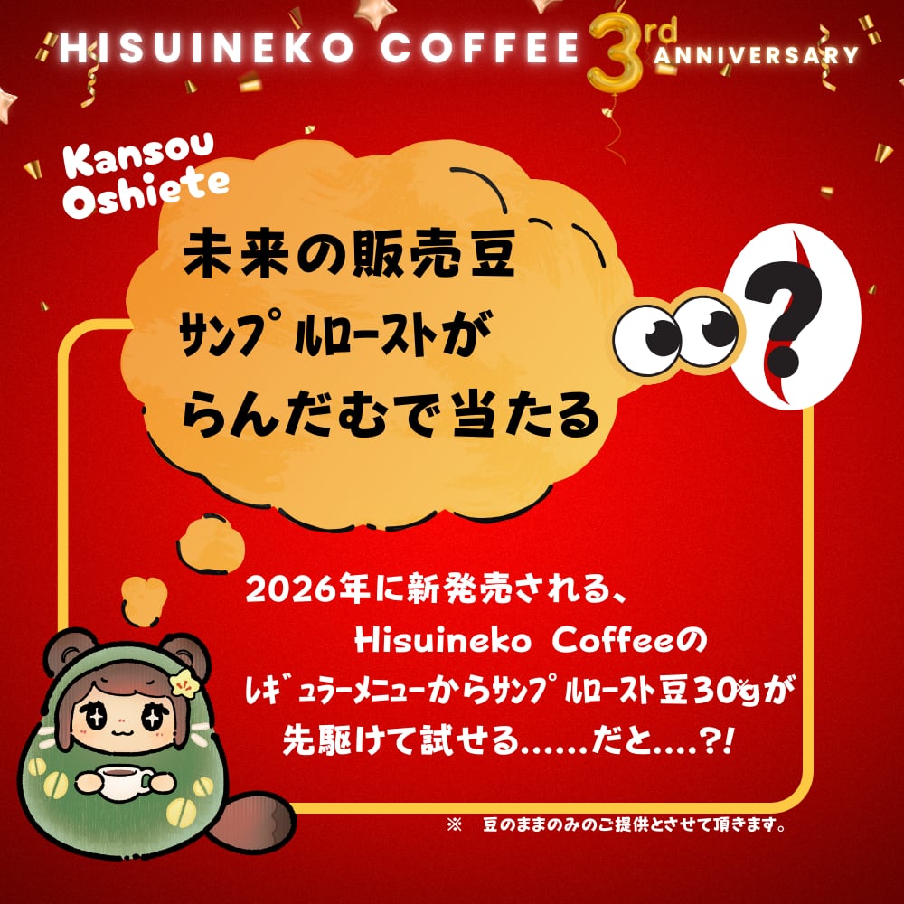 皆様のおかげさまで2026年1月1日にHisuineko Coffeeは3周年。