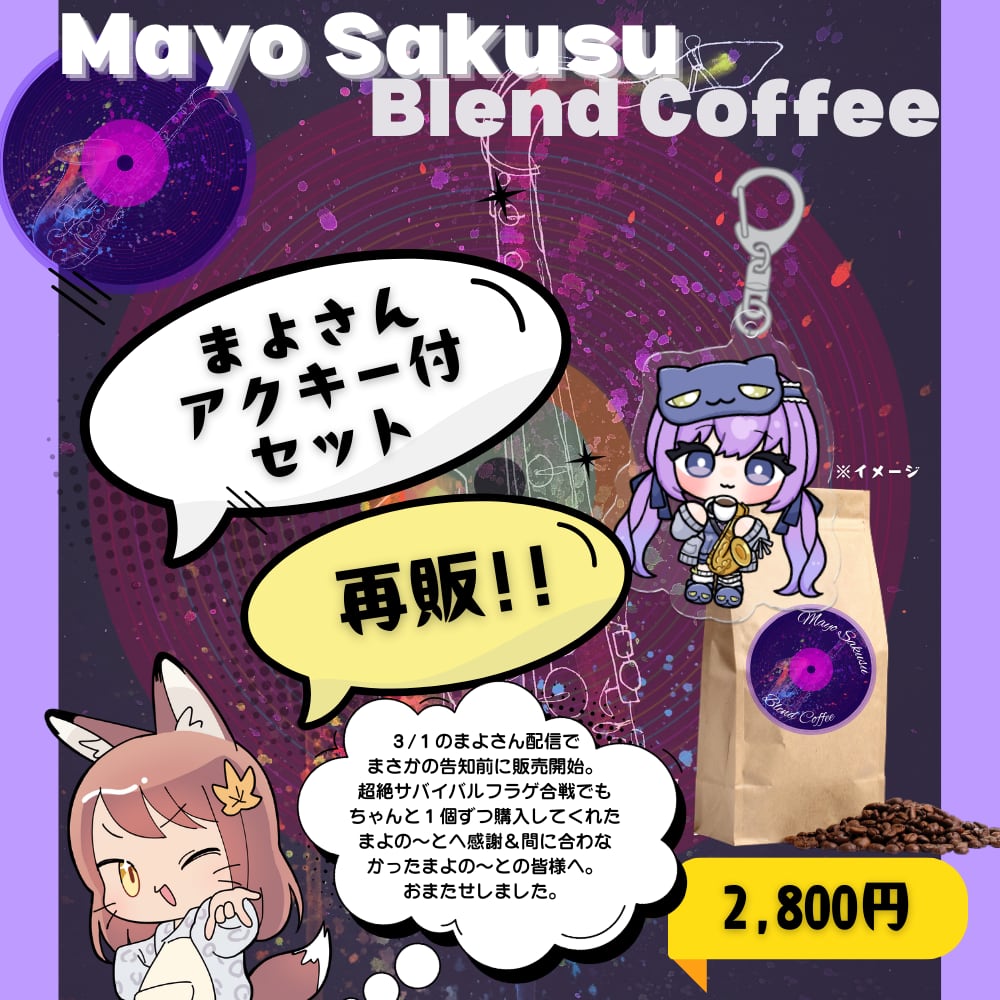 (朔栖まよさん特別コラボ)【アクキー付!】【Mayo Sakusu Blend Coffee 2026】(100g)+朔栖まよさん限定アクリルキーホルダー